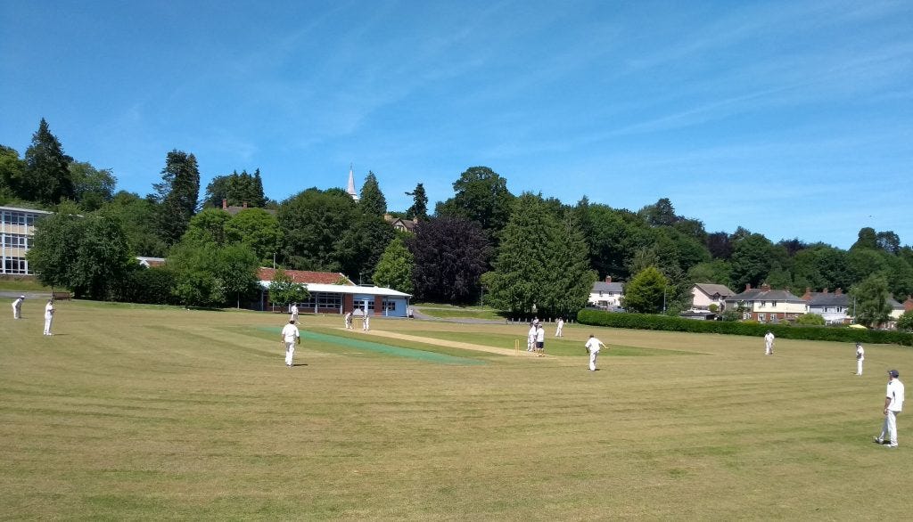 Last weekend I played one of my rare league games for Kington 2nds. Due to a local festival on one of the grounds, the Seconds’ game was shifted to the Sunday. Unfortunately, not only was a knockout Cup game for the Firsts scheduled for the same afternoon, but also some sort of Important Match in The Other Sport. The consequent player shortage led to a Saturday-evening call-up for yours truly: desperate times, &c.